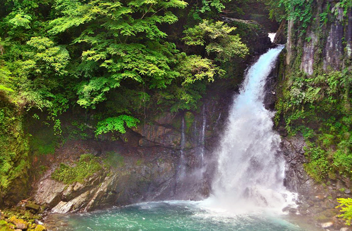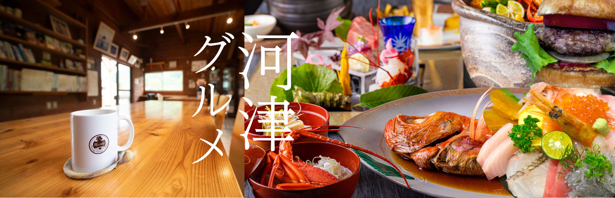 雄大に流れ落ちる滝がみられる「河津七滝」やわさび沢など、山の風景が広がる地域。猪鍋や河津グルメのわさび丼を食べられるお店があります。